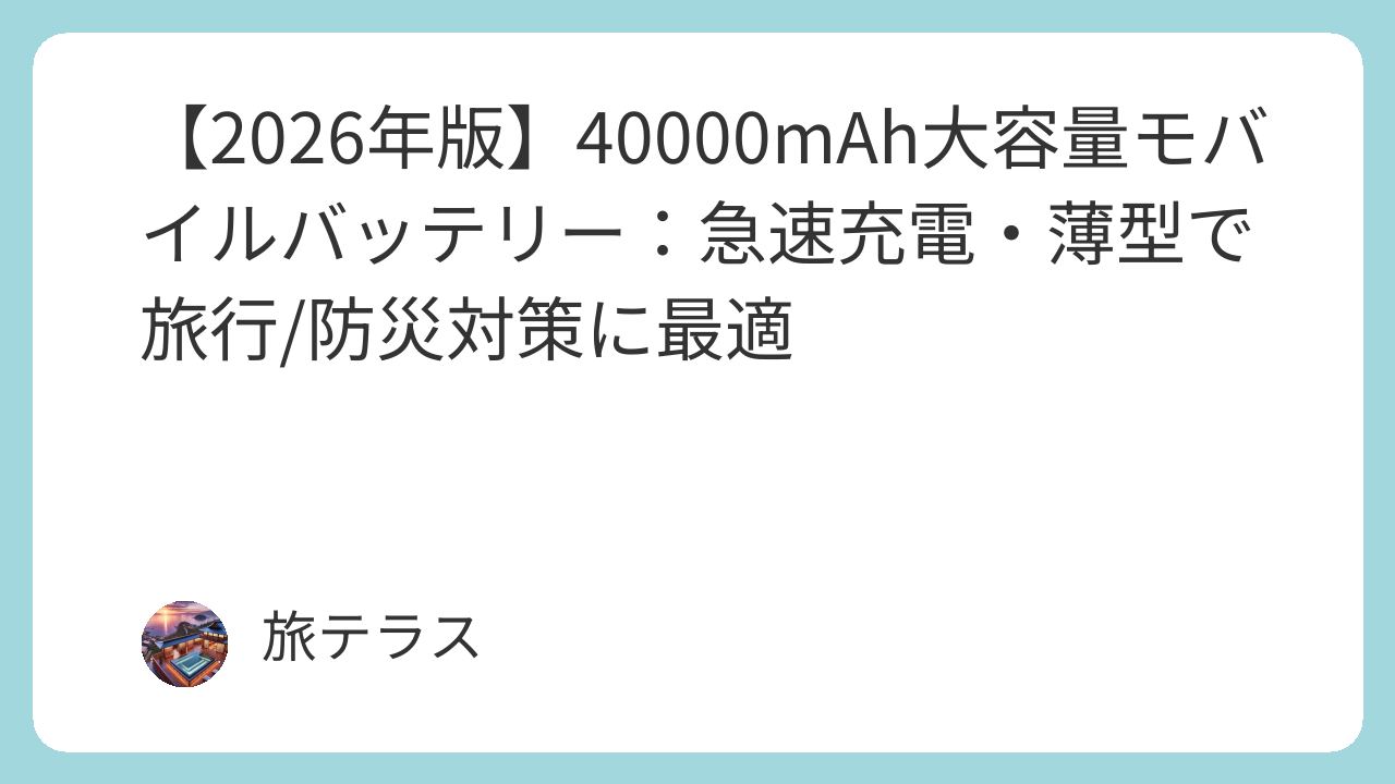こんにちは、旅テラスです。旅行や出張、アウトドアに防災と、あらゆるシーンでスマホの充電切れは本当に困りますよね。特に旅行中は、地図アプリやカメラなど、スマホのバッテリーを消費する場面がたくさんあります。そんな時に頼りになるのが、大容量モバイルバッテリーです。今回ご紹介する「モバイルバッテリー 大容量 【40000mAh大容量 ・薄さ2.84cm】IAPOS モバイルバッテリー 急速充電 22.5W/20W対応 3台同時充電可能 最大4.5A出力 LED電量残量表示 Type-C入出力兼用 回路保護 低電流モード対応 携帯充電器 スマホ充電器 軽量 機内持ち込み可能 旅行/出張/アウトドア/キャンプ/停電対策/防災 power bank PSE技術基準適合(ブラック)」は、40000mAhという超大容量ながら、薄型で持ち運びやすいのが魅力です。