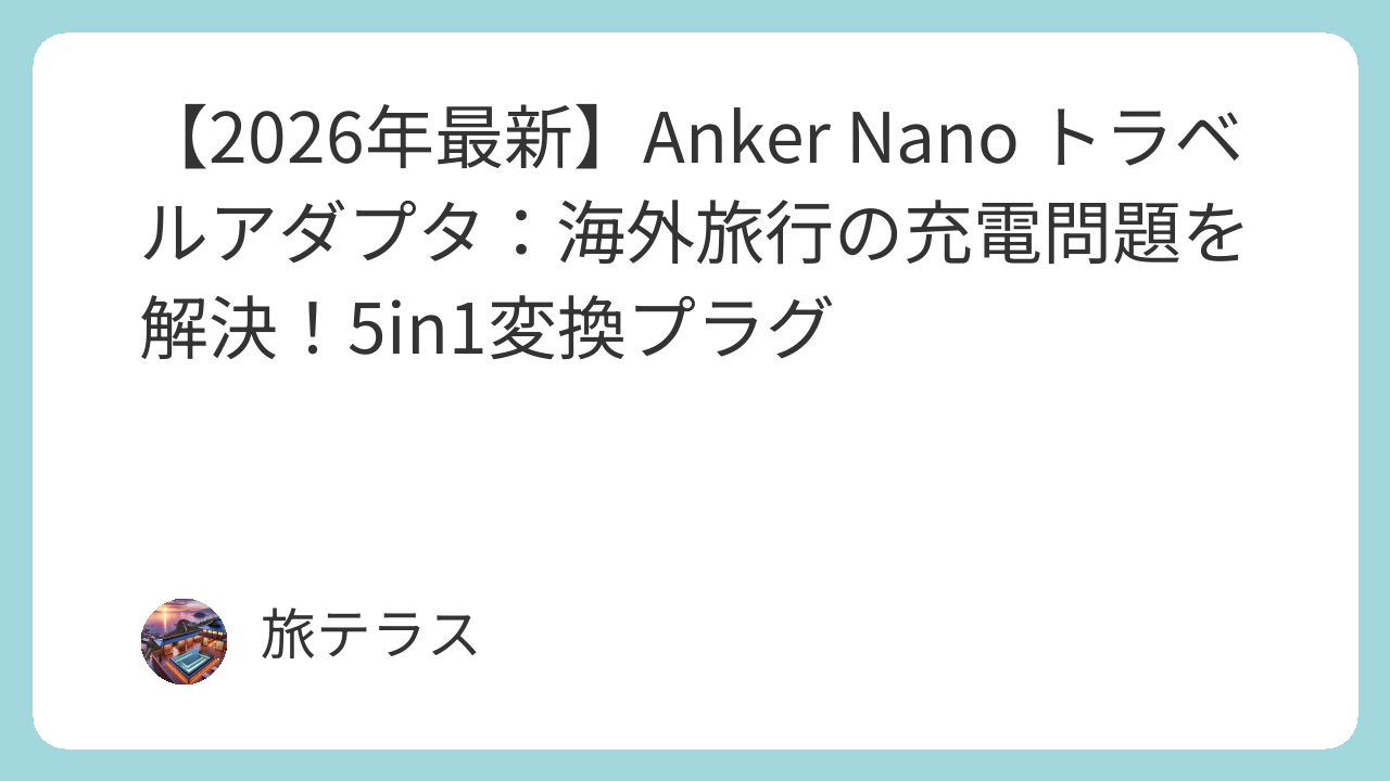 【2026年最新】Anker Nano トラベルアダプタ:海外旅行の充電問題を解決!5in1変換プラグ