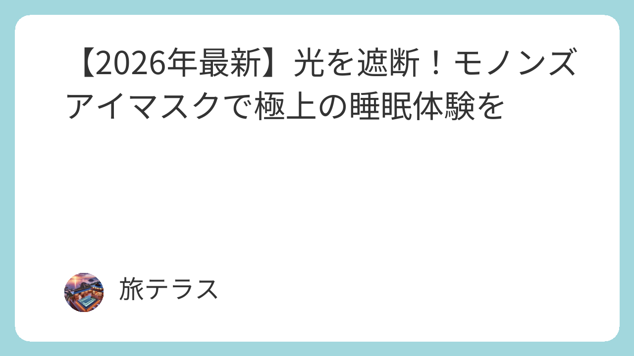 こんにちは、旅テラスです。今回は、睡眠の質を劇的に向上させる【光透過率0%・目元リラックス】モノンズ(Monons) アイマスクをご紹介します。