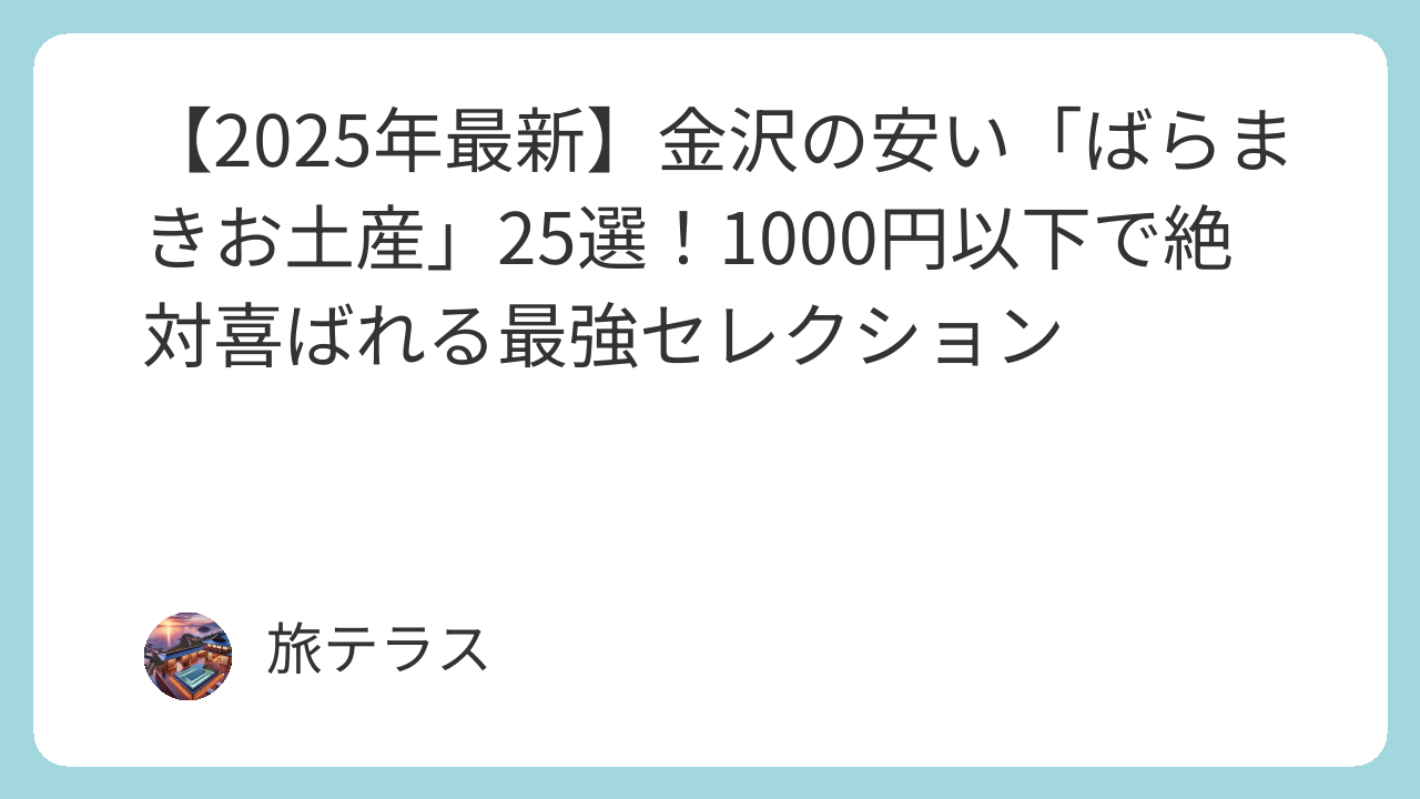 この記事では、1個あたり100円台から買えるコスパ最強のお菓子から、ちょっとしたセンスが光る実用的なアイテムまで、25種類を厳選してご紹介します。もうお土産選びで迷う時間はありません。この記事を読めば、あなたの金沢土産選びは完璧です!