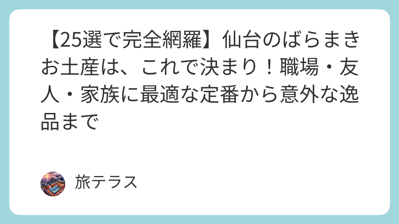 仙台のばらまきお土産選びは、「相手のことを思うこと」から始まります。本記事で紹介した25選は、すべて実際にばらまきお土産として選ばれている商品ばかり。職場の同僚から、友人、家族まで、幅広い人に「喜ばれる」ことが確定しているのが特徴です。